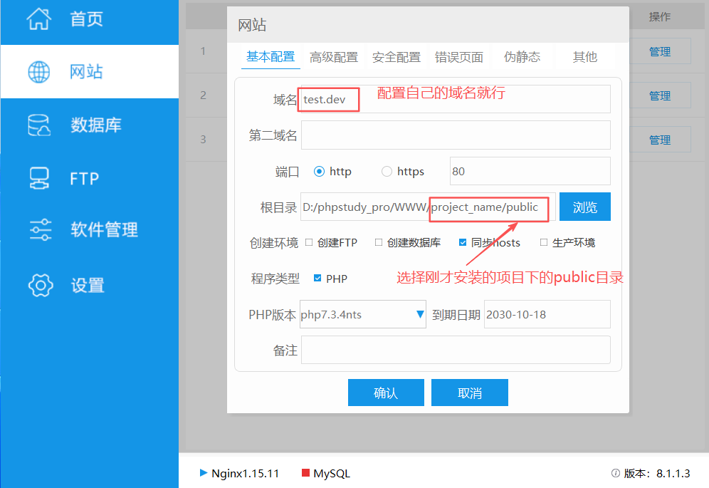 域名:可以配置自己的实际域名,也可以是本机的IP地址。